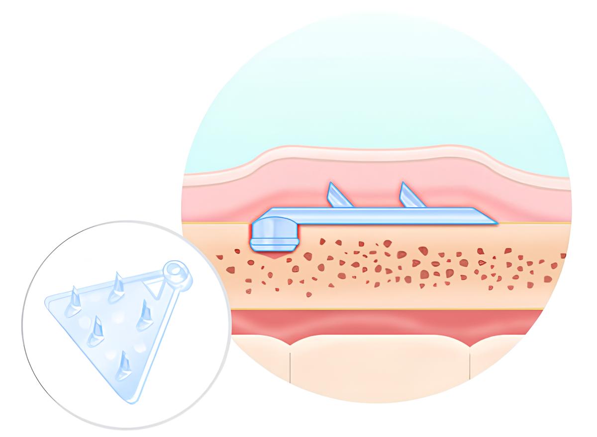 인증받은 흡수성 보형물로 사선 형태의 돌기가